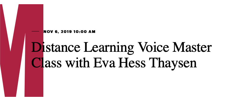 Distance Learning Voice Master Class with Eva Hess Thaysen