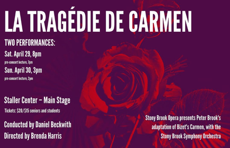 Eunsung Lee, baritone, singing Escamillo in La Tragédie de Carmen by George Bizet and Marius Constant. Version adapted by Peter Brook and Jean-Claude Carrière with Stony Brook Opera. April 29th, 2023 @ 8PM and April 30th, 2023 @ 3PM.